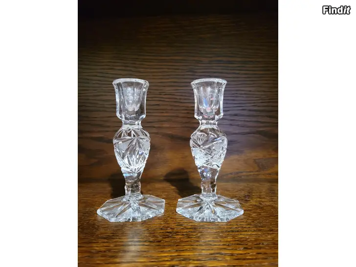 2 kpl kristallikynttilänjalkoja, korkeus 14 cm.