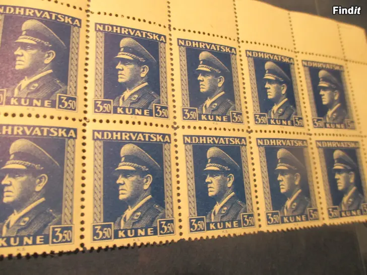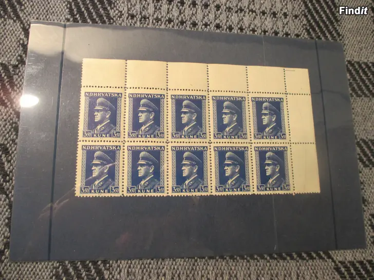 Erittäin harvinainen 10-kpl:een blokki kroatialaisesta diktaattorista Ante Pavelicista, 1889-1959.