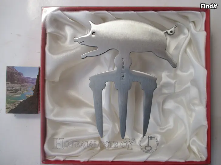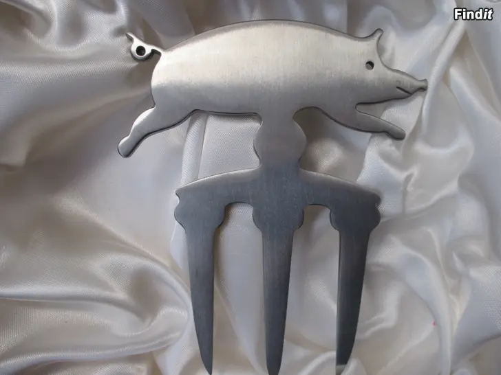 Tässä erittäin näyttävä kinkkuhaarukka, joka tietenkin sopii myös leikkeleiden ottimeksi.