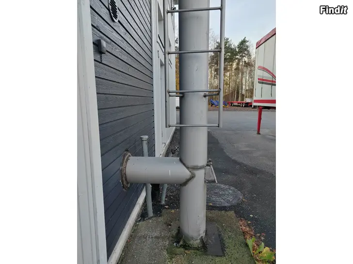 Eristetty ruostumattomastateräksestä valmistettu savupiippu Pituus: 9200mm, sisähalkaisia 150mm, ulkohalkaisia 250mm, eristeenä palovilla. Nuohuostikkaat piipun kyljessä.