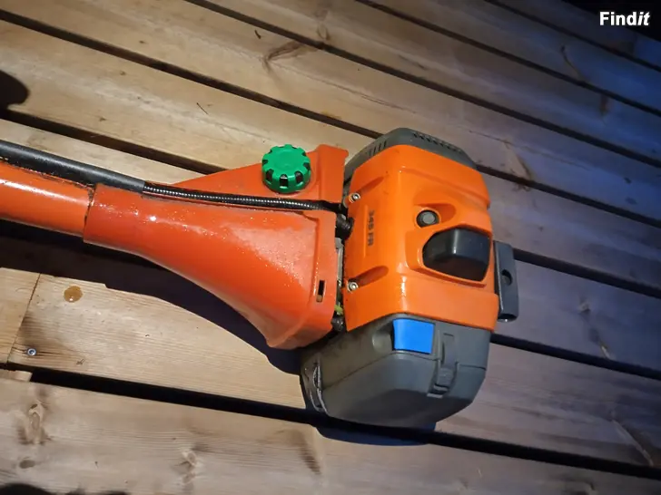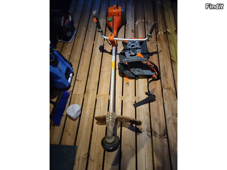 Hyväkuntoinen kesämökkikäytössä ollut laadukas raivaussaha ja hyvin istuvat siistit Husqvarnan Balance XT valjaat. Mukaan raivausterä, vesakkoterä ja siimatrimmeri suojalla.