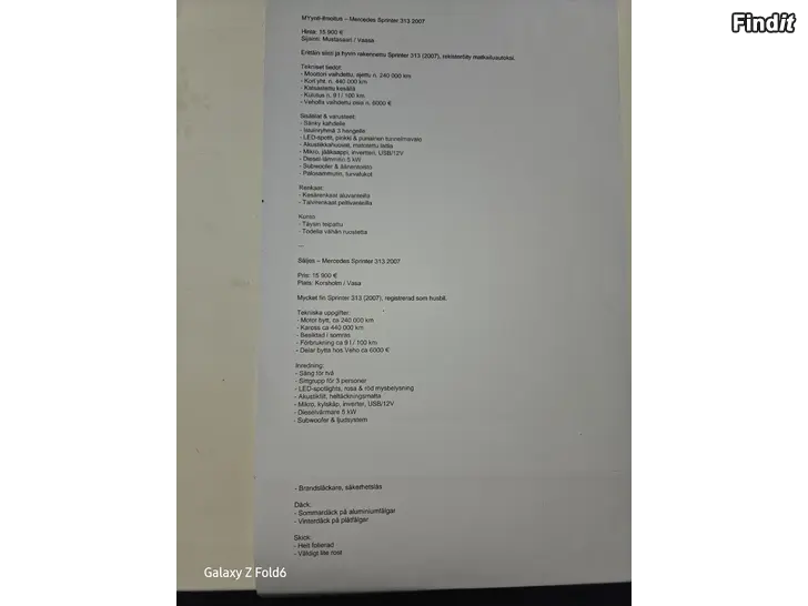 Todella hyvä matkailu auto mb sprinter 313 vm.2007 justiin katsastettu 1 kesä ajettu kesärenkaat hyvät talvirenkaat paljon osia vaihdettu auto on .mennyt 412000km.ut kone on vaihdettu 2.1L diseli joka on mennyt 240000 km.äänitostolaitteet Soitin missä on. Tv .satelliitti paljon muuta herkkuja ilmapenkkit 5 henkilölle saa ajaa B-korttilla kulutus maantiellä 9l/100km todella vähän ruostetta invertteri 1500w.yläsänky kahdelle . Jääkaappi micro led valaistus ledinauhat vinyyli lattia sisätilalämmitin 7kv diseli ja webasto löytyy kans kaikki tehdyt korjaukset löytyy kuitti n 6000 € edestä kysymällä kerron lisää joka päivä se on ajossa kans .