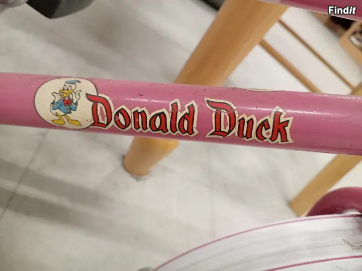 Retro Donald Duck pinkki polkupyörä. Tuumakoko hakusessa, ehkä 14-16.