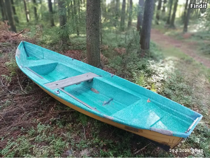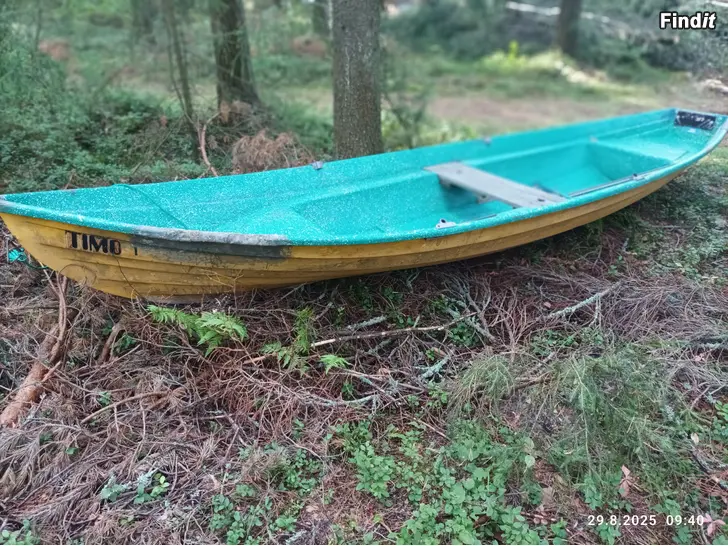 Myydään käyttökuntoinen lasikuituvene. Pituus 4,7 m. Mukana airot ja pohjatulppa. Ei vuoda. Muutamasta kohtaa korjattu.