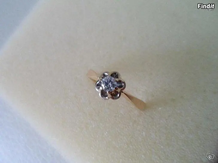 Kultainen sormus koko 17. Aito timantti n. 0,15ct, puhdas ja kirkas.