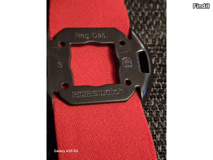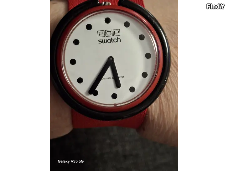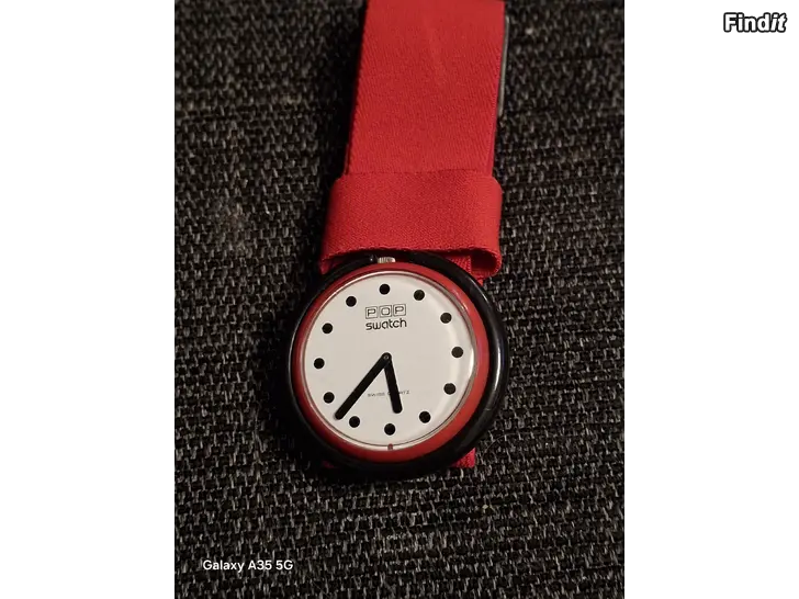 Pop Swatch punaisella rannekkeella oleva toimiva rannekello ,pientä ajan patinaa kellotaulussa.,ei vaikuta käyttöön