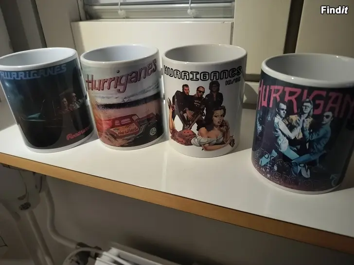 4 kpl Hurriganes aiheisia kuppeja, 330ml, posliini.
