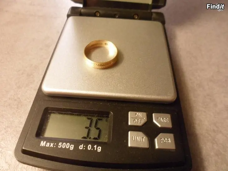 18 karaatin kultaa, leveys 5 mm ja paino 3,5g