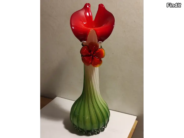 Murano? vaasi. Korkeus 32 cm. Luultavasti Murano, varmuutta ei ole. Todella kaunis ja värikäs lasinen vaasi. Edullisesti muuton vuoksi. Nouto