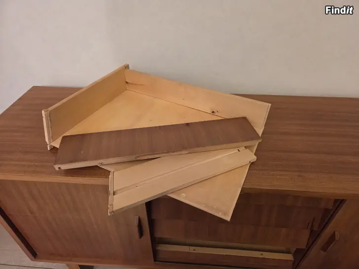 Vanha senkki myynnissä. Yksi laatikko pitää liimata kasaan.