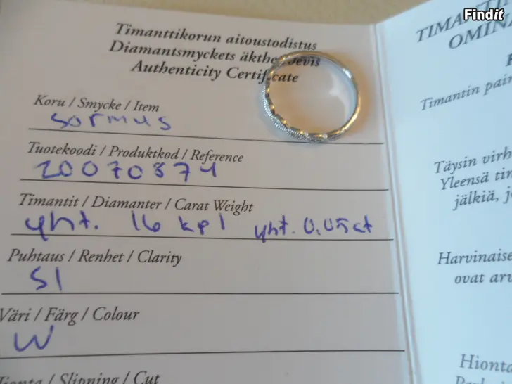 kaikki timantit paikallaan, erittäin hyvässä kunnossa, lähes käyttämätön