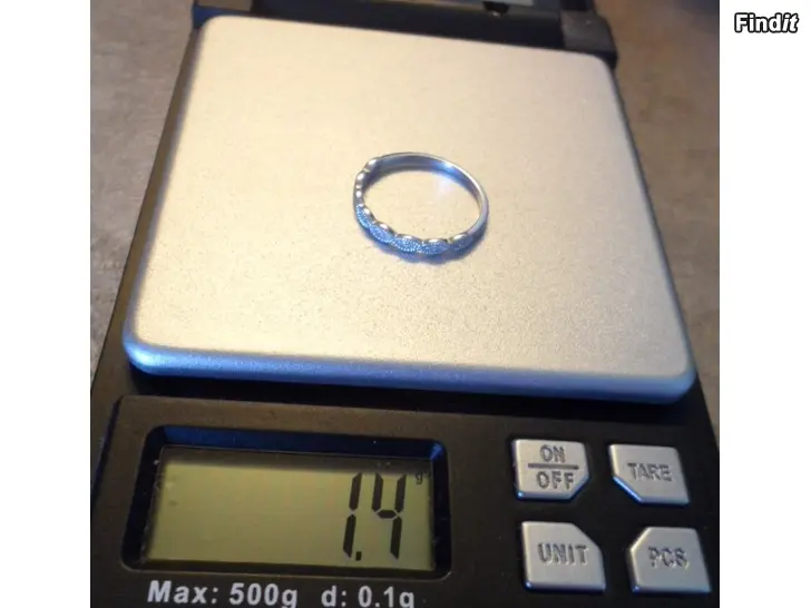 Valkokultainen sormus koko 16, jossa 16 aitoa timanttia yht. 0,05ct