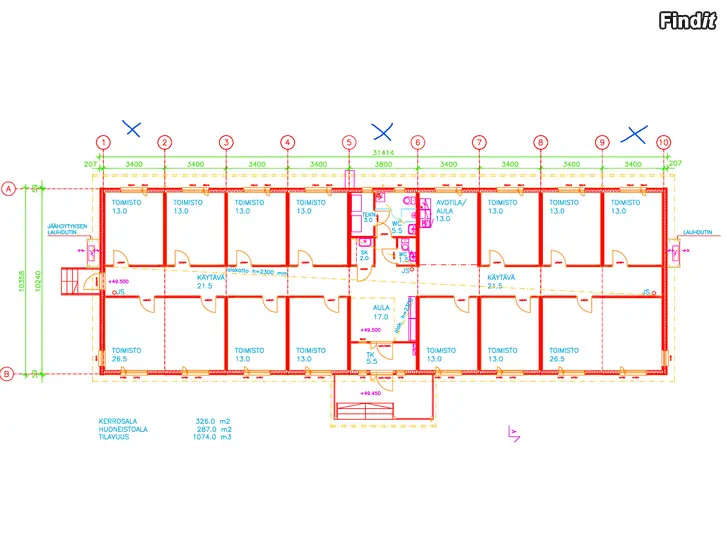 Toimistomoduulit ovat lämpöeristettyjä, sähkövalmius, 2- ja 3-seinäisiä, pulpettikatto.