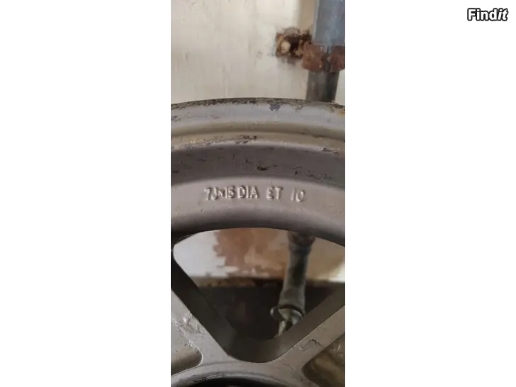 7jx15 Compomotive aluvannesarja keskiöillä, joissa yhdessä Ford logo ja kolmessa ei mitään logoa. Yhdestä vanteesta pieni pala irti ulkokehältä, näkyy kuvassa.