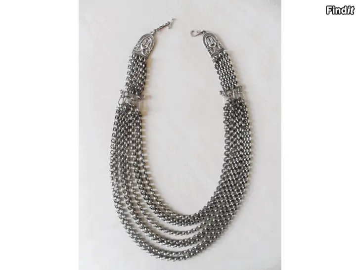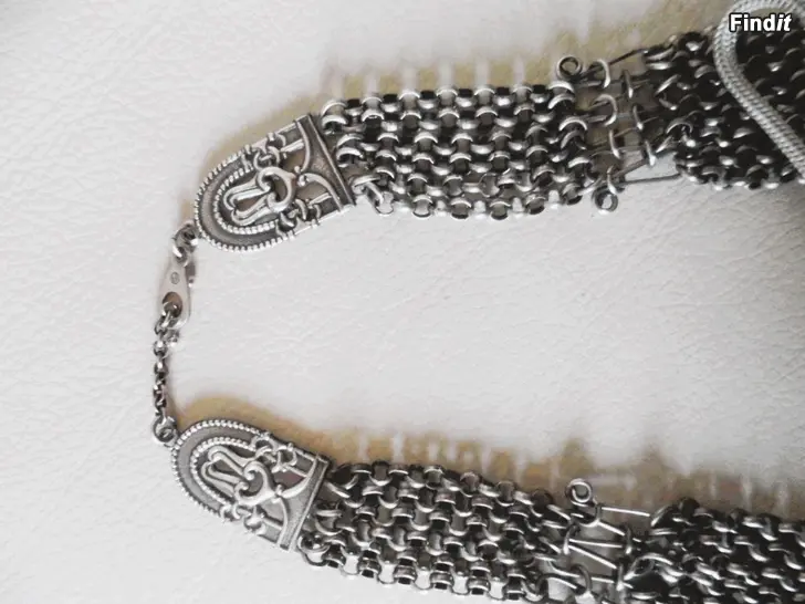 Kuvanmukainen Kalevala Korun Hämäläinen juhlakääty hopeoitu kaulakoru pituus 48cm
