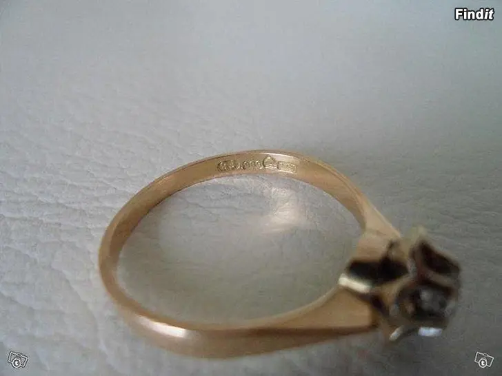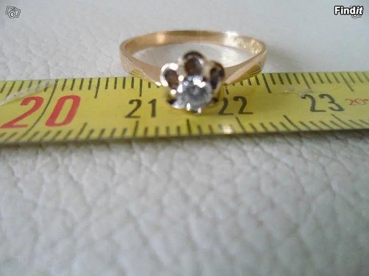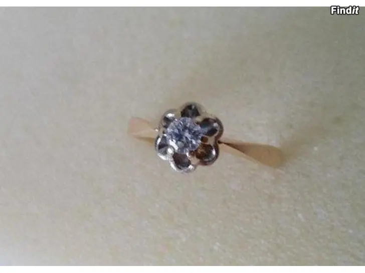 Kultainen sormus koko 17. Aito timantti n. 0,15ct, puhdas ja kirkas.