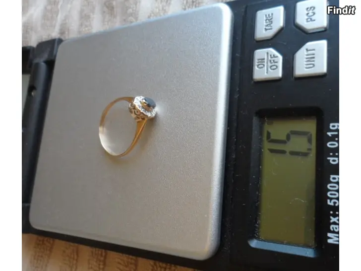 - Kultainen Sinisafiiri Timanttisormus koko 16,5