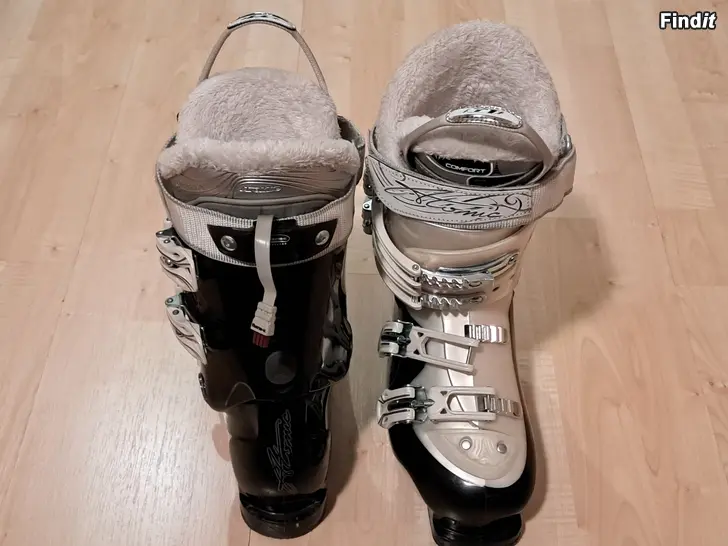 Siistit ja hyväkuntoiset Atomic B-Tech 75 -laskettelumonot, koko 25,5 - 26,0. Sidepituus 304 mm. Koko vastannee kenkänumeroa 38½ - 40, jalkaterän mallista riippuen.