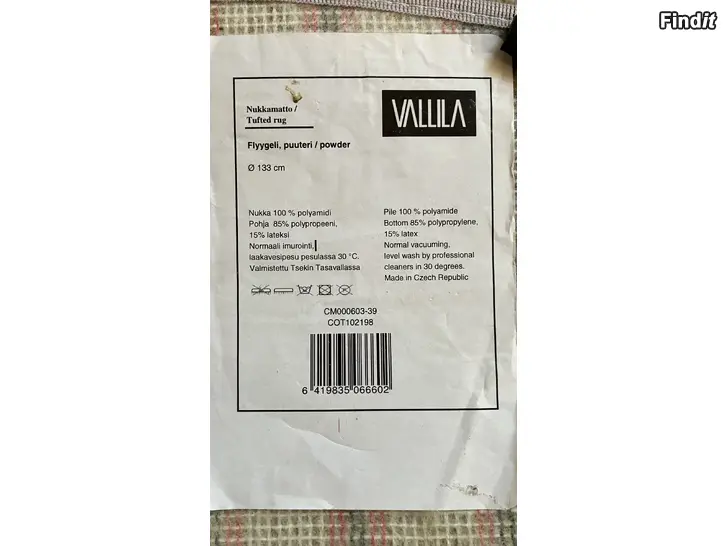 Vallila-matta, 133 cm i diameter. Obetydligt använd, endast i gästrum.