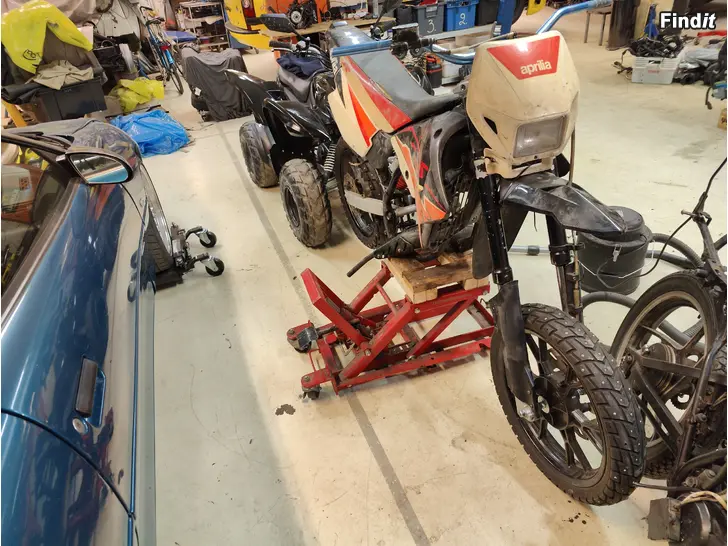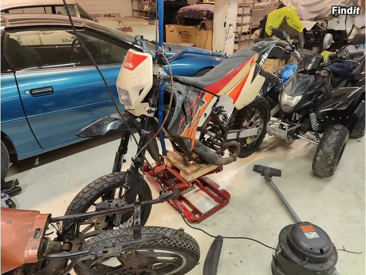 Osia on ainakin Riejun mittari ja usd keula puuttuu osia ja Generic smoto vanteet hyvillä talvikumeilla. Runko ja katteet paitsi etulokari on Aprilia RX vuosimallia ? tullut vaihtokaupassa ilman papereita.