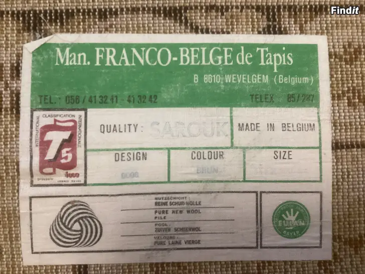 Aito Belgialainen villamatto 140 x 200 ,hyväkuntoinen.