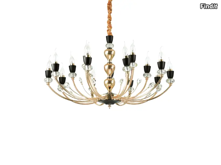 Montatura in metallo dorato con dettagli nero opaco. Elementi decorativi in cristallo molato. Copricatena in velluto.