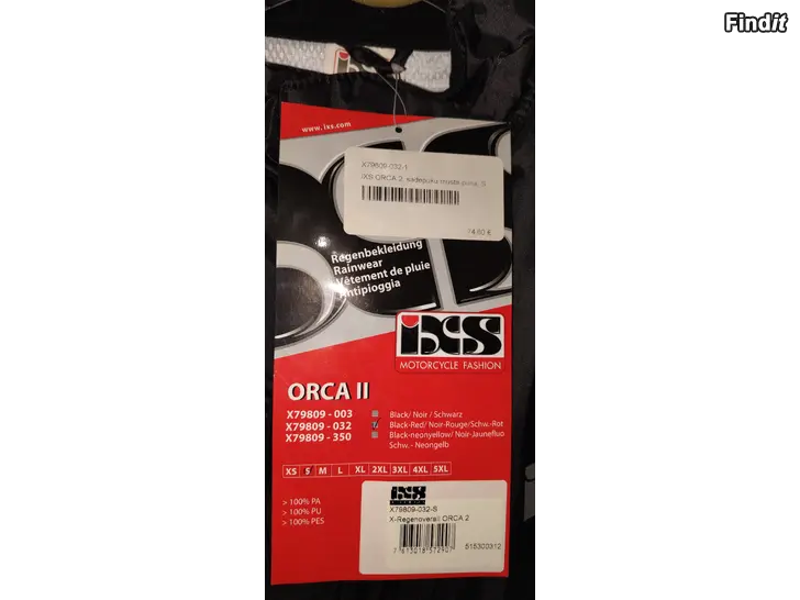 Uusi moottoripyörä sadehaalari XS ja S koko. Hinta/kpl.