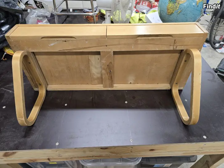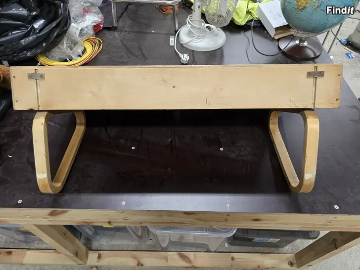 Alvar aallon konsoli/hylly. Hyllyn pääli-viilu irronnut paikoittain ja käytön jälkiä löytyy. Osaava korjaa.