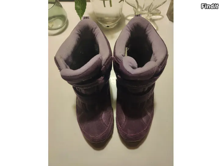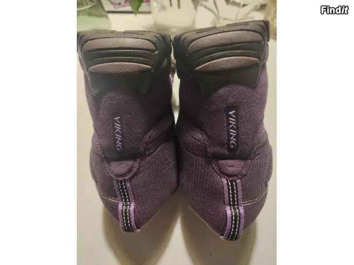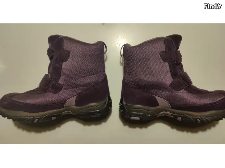 Myydään vikingin talvikengät tytöille, koko 33. Kengät ovat violettia väriä ja valmistettu kestävistä materiaaleista, jotka sopivat kylmiin ja kosteisiin olosuhteisiin. Kengissä on tukeva pohja ja ne suljetaan kahdella tarranauhalla, mikä helpottaa pukemista ja istuvuutta. Hyvä käytetty kunto,toisen kengän pohjassa kangas kulunut viimeinen kuva. MMM