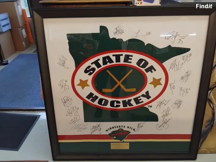 Hieno ainutlaatuinen Minnesota Wild taulu vuodelta 2010. Pelaajien allekirjoitukset. Iso koko.