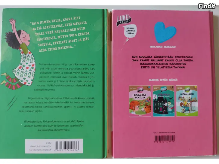 Myydään setti hyväkuntoisia,siistejä luettuja lastenkirjoja. Osassa omistuskirjoitukset. Sopii mielestäni parhaiten 1-3 luokkalaiselle lukutaitoiselle, joka kaipaa jo vähän paksumpia kirjoja luettavaksi tai vanhemman luettavaksi. MMM