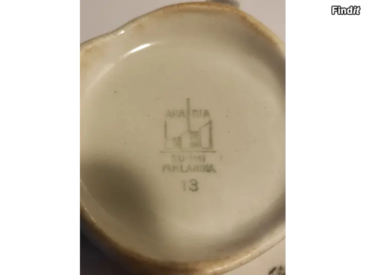 Arabia Maisema sokerikko, Valmistettu 1939-75. yhdessä kuvassa näkyy pieni halkeama joka tuntuu kynnellä. Muutoin hyväkuntoinen Arabian piippuleimalla.
