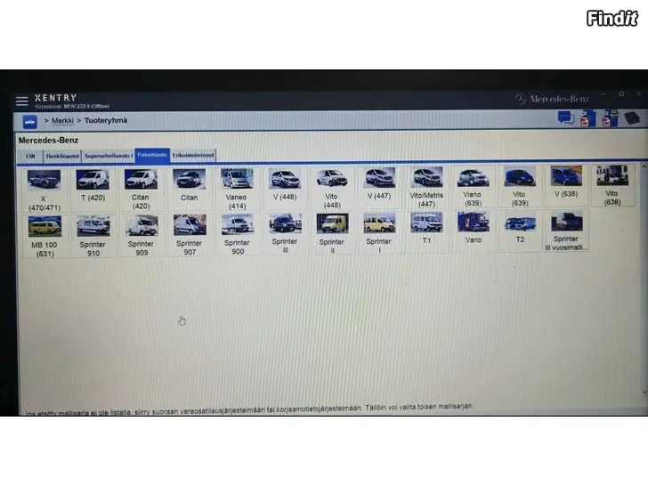 MB testeri/vikakoodinlukija. Tällä pääsee mersujen sielunelämään hyvin käsiksi. Kattavat ohjelmat. Vikakoodien luku, korjausoppaat kuvineen ja teksteineen, mb varaosaluettelo, koodaukset, sopeutus ja vaikka mitä.