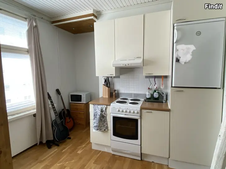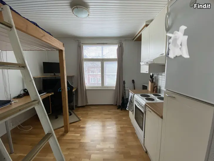 Yksiö 15 neliötä. Wolffintie 9. Minikoti jossa on kaikki tarpeellinen, myös tiskikone, pyykkikone ja mahdollisuus autopaikkaan. Kaukolämpö sisältyy vuokraan.