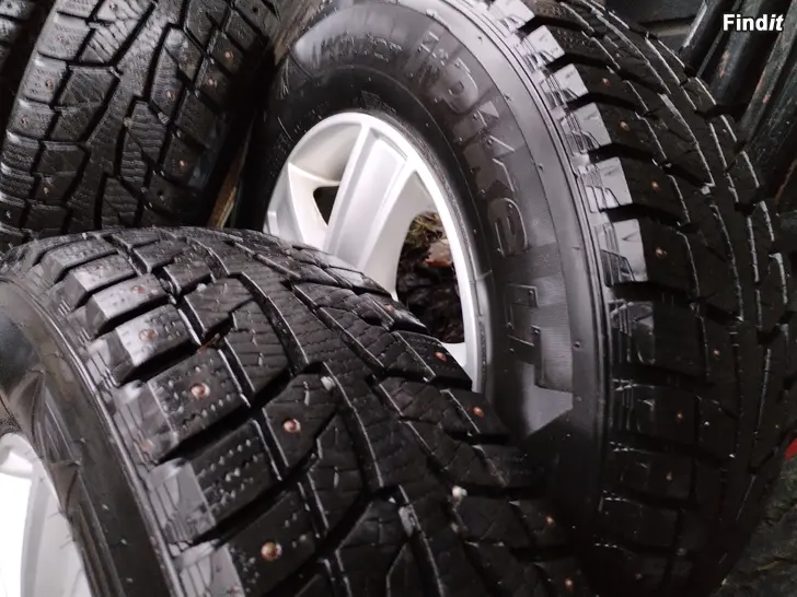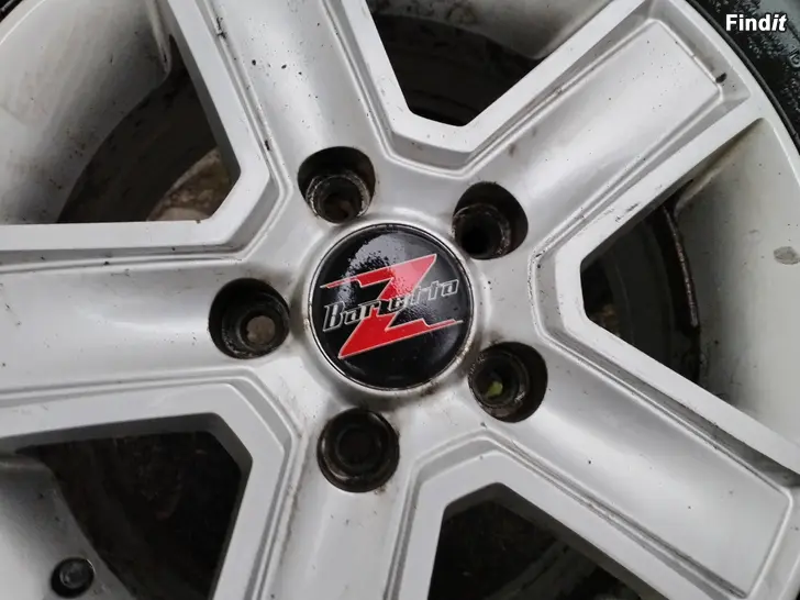 5x118 jaolla Barzetta aluvanteet. Keskireikä 71.1 mm ,et 55 , koko 6.5 x 15. Päällä Hankook nastarenkaat 215-70-15.Pintaa kaikissa hyvin n. 7-9 mm. Valmistusaika 2118 ,eli ikää jo on...kahdesta renkaasta joitain nastoja irronnut , 2 muuta hyviä. Vanteet siistikuntoiset ja kaikinpuolin OK. Tästä aika hyvä setti, esim. matkailuautoon , pakuun...