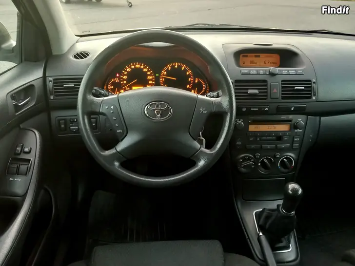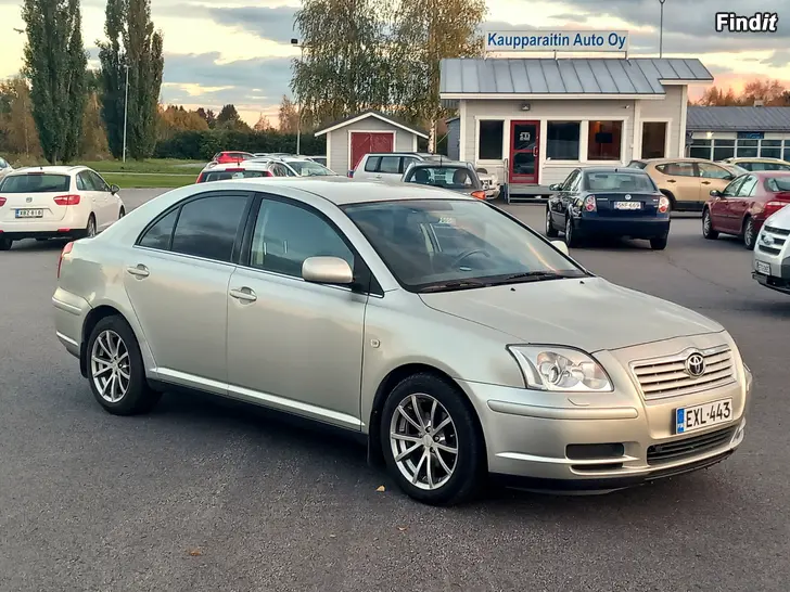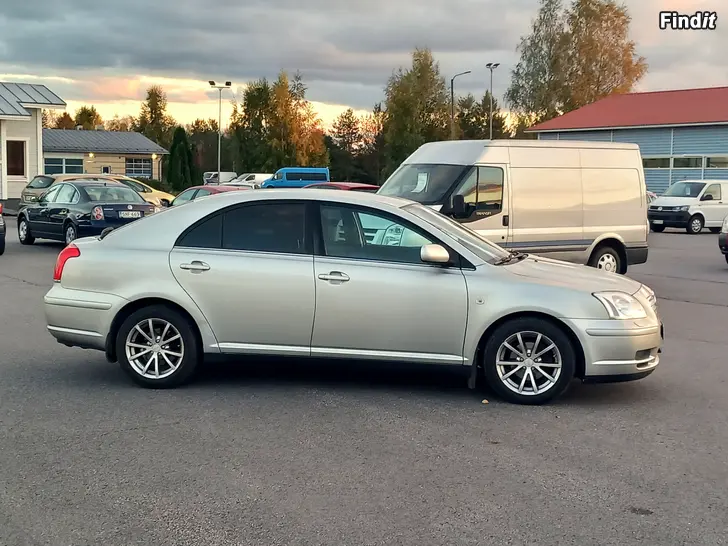 SUOMI-auto, Met.vaaleanvihreä, Täyd.huoltokirja, Ilmastointi, ABS-jarrut, 8 x airbag, Ajotietokone, Keskuslukitus, Sähkölasit, Sähköpeilit, 8 x aluvanteet, Alkup.CD/kasettisoitin + säätimet ratissa, Vetokoukku, Lohkolämmitin + sisäpistoke + sisätilalämmitin Defan kapeamalli, Ikkunatummennukset, 4 x roiskeläpät, SUOSITTU AVENSIS 5-OVISENA!