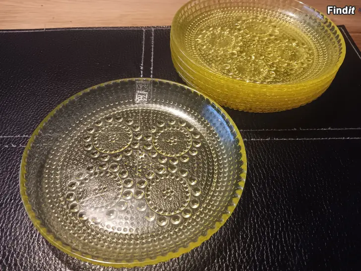 Riihimäen Lasi, Nanny Still, Grapponia Lautanen 14,5 cm, keltainen. Kaunis Grapponia-sarjan pieni keltainen lautanen. UV-valossa hohtavaa uraanilasia