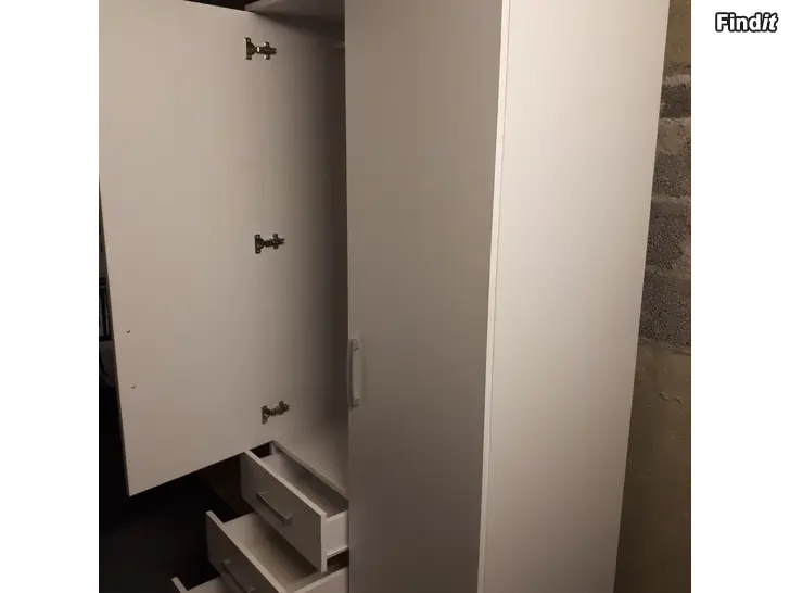 Vaatekaappi valkoinen toisessa ovessa peili.