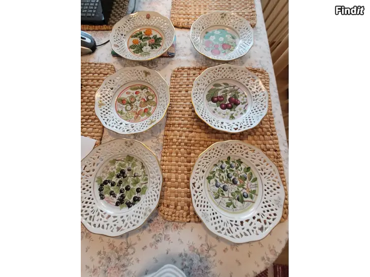 Tallrikarna 6stycken som syns på bilden är en del av Fyrklöverns populära samlarserie Nordiska Bär. Tallrikarna har en spetsdekorerad kant och illustrationer av olika bär. Schuman Arzberg Tradition har gjort tallrikarna!