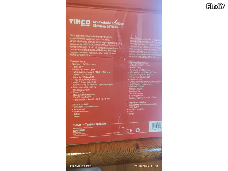Uusi käyttämätön timco moottorisaha ei sahattu aivan uusi siis! 16 tuuman laipalla.Monessa paikassa myydään 149€ tuo siis halpa käyttö saha syksyn puuhommiin 😀