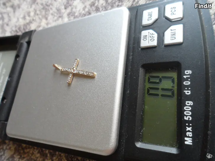Kultainen siro risti 14 karaatin kultaa, leima lenkissä 585
