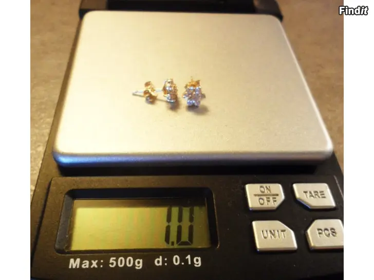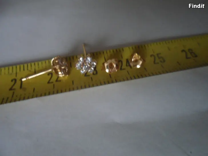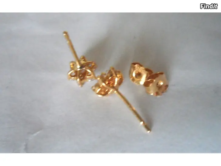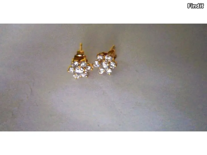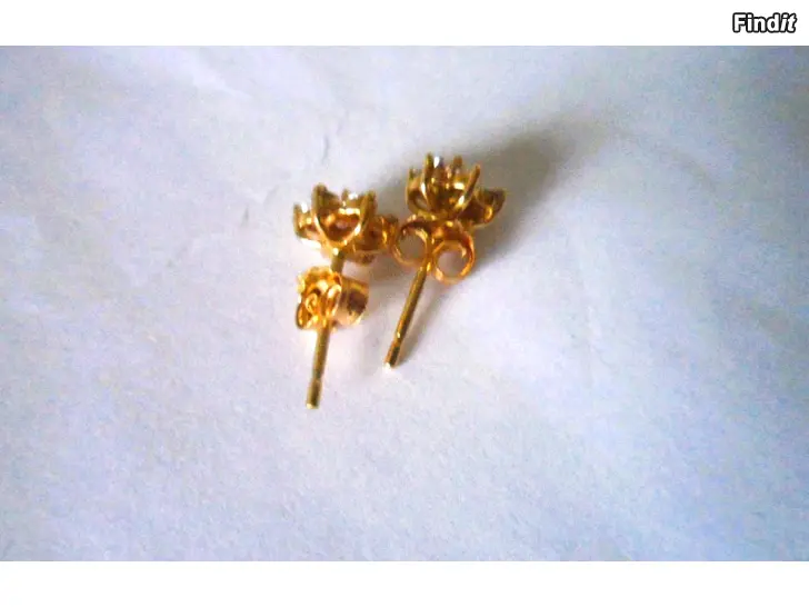 Kultaiset korvakorut, kirkkaat kivet, kivistä ei tietoa. 18 karaatin kultaa.