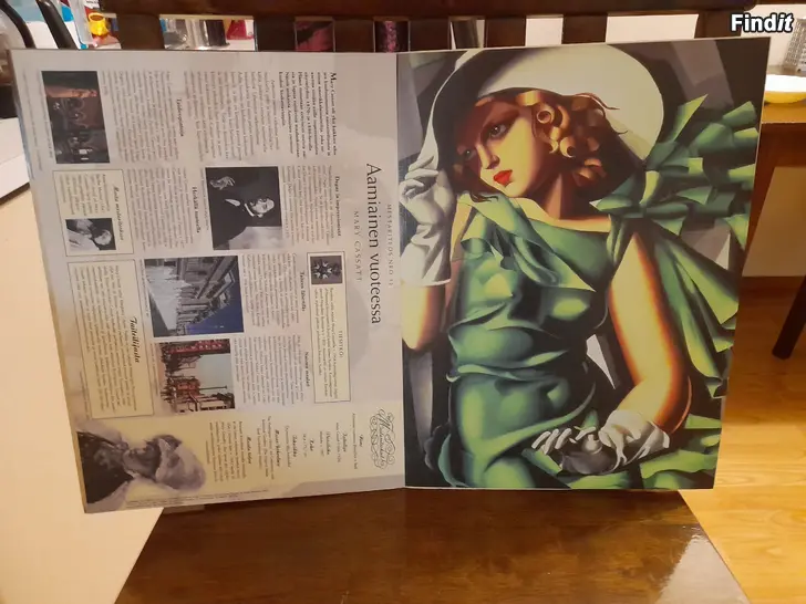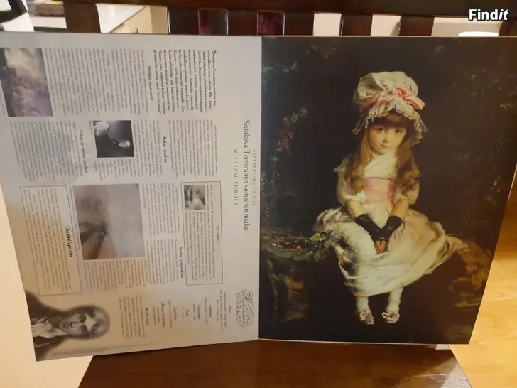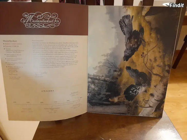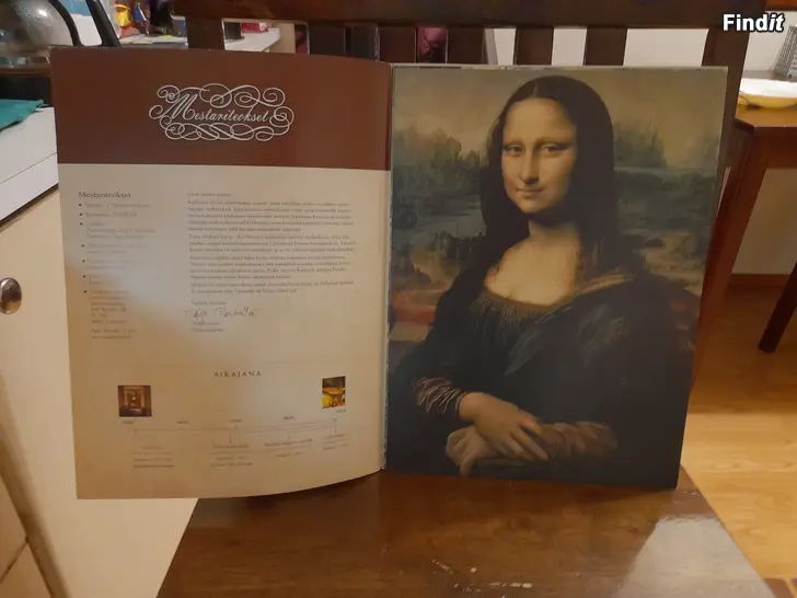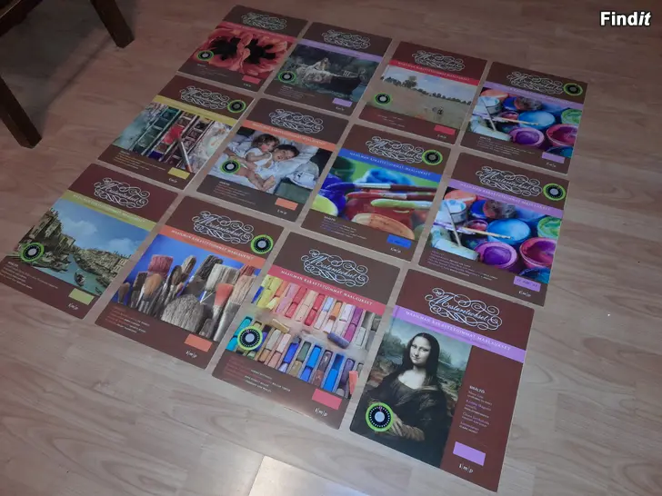 Upeita taidekuvia yksissä kansissa. Kuvia on yhteensä 48 kpl. Tunnetuilta taiteilijoilta. Kansiossa ja taidekuvan takana tietoa taiteilijasta ja itse maalauksesta. Nämä halutessaan vaikkapa kehystää. Kuvia on yhteensä 48 kappaletta, joten yhdelle kuvalle ei silloin paljoa jää hintaa. Halutessa voin myös laittaa listaa teoksista. Yhdessä kansiossa on siis useampi, yleensä 4 teosta.