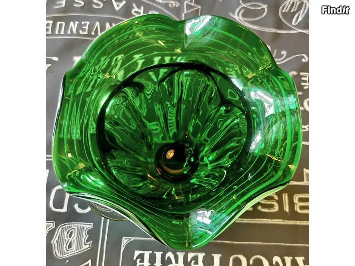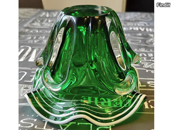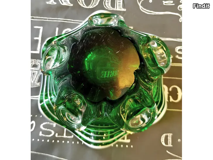 Vihreää Puhallettua lasia. Mitat: n. 10 cm x 13 cm. Suunnittelija: Jan Beranek. Täysin uudenveroisessa kunnossa. Postikulut ostajalle tai nouto Tikkakoskelta.