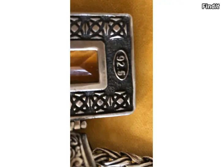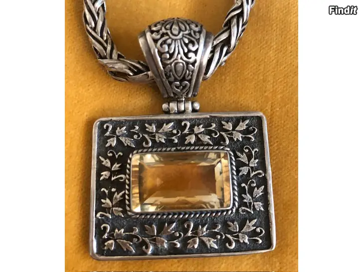 Painava hopeinen 925, ketju+riipus, riipus sitriini kivellä. Ketjun pituus 43,5cm, ketjun paksuus 0,5cm. Kauniisti punottu pyöreä hopeinen ketju. Riipus koko pituus 4cm, korkeus 3,5cm, kiven koko 2,5x2cm. Postitetaan tarvittaessa.