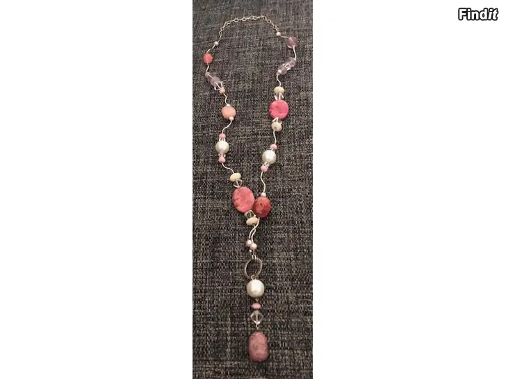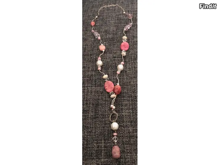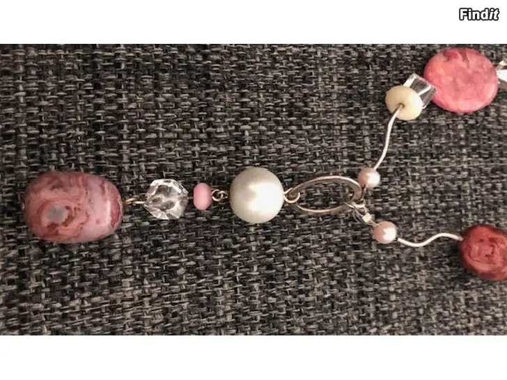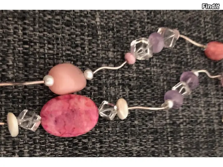 Hopeinen, aidot korukivet ametisti, helmi, vaaleanpunainen ruusukvartsi, jaspis. Korun pituus 36x2cm+7cm. Postitetaan tarvittaessa.