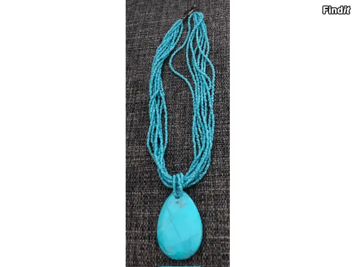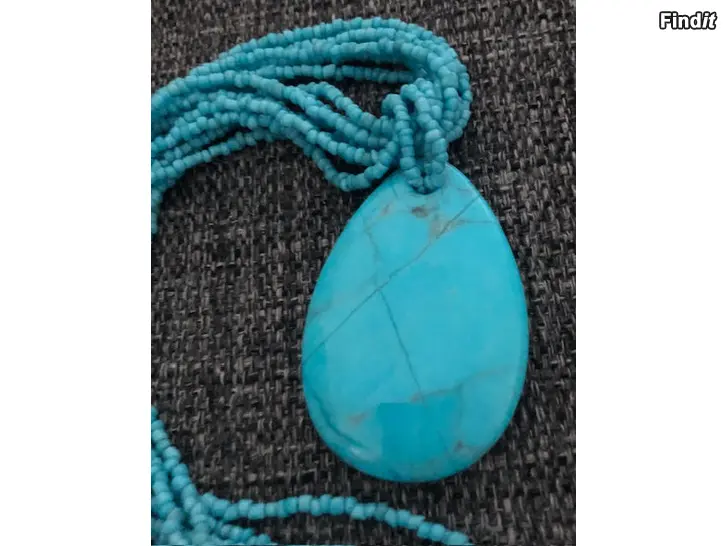 Turkoosikivi kaulakoru, pituus 43cm. Kiven koko 5,5x3,5cm. Postitetaan tarvittaessa.