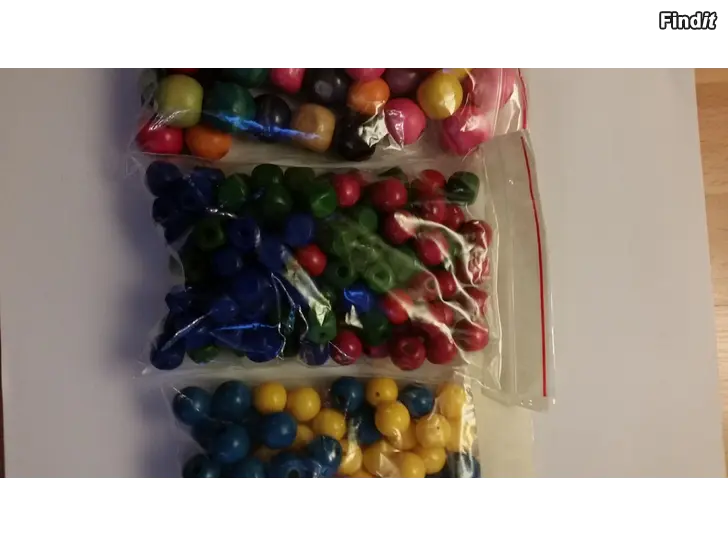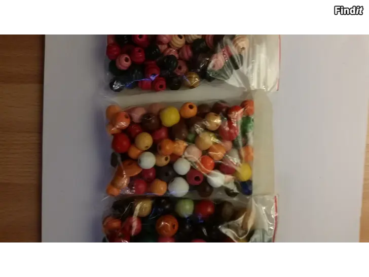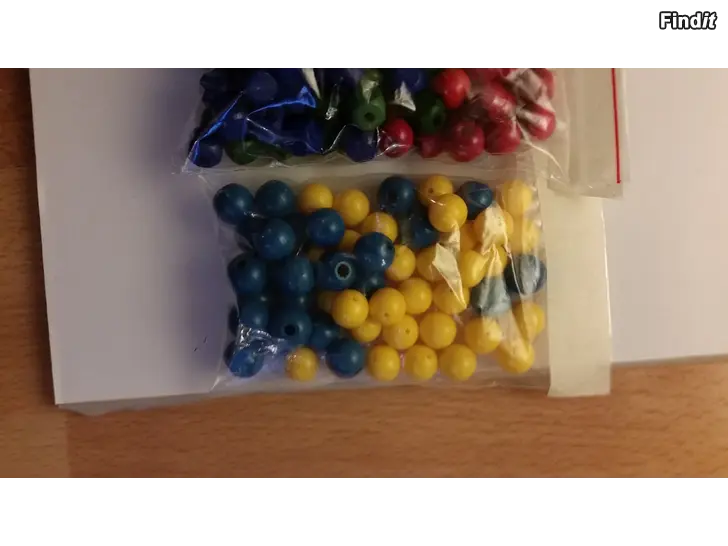 5 pussia helmiä -kierteiset puuhelmet, -värikkäät puuhelmet, -isot puuhelmet, -sin/vihr/pun puuhelmet, -viimeinen kuvan pussi: siniset puuhelmet/keltaiset muovia
