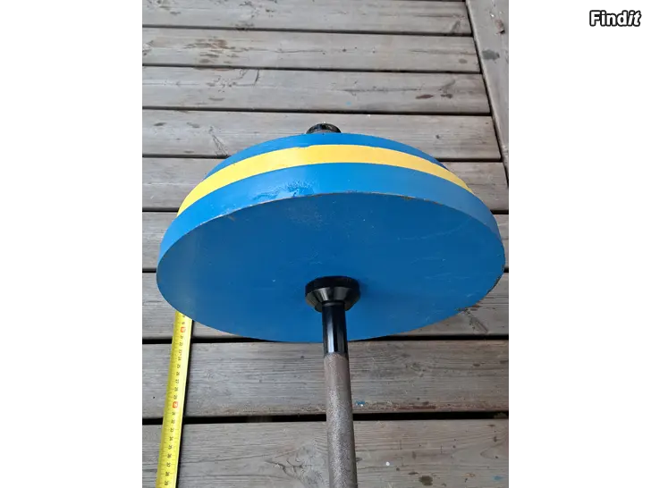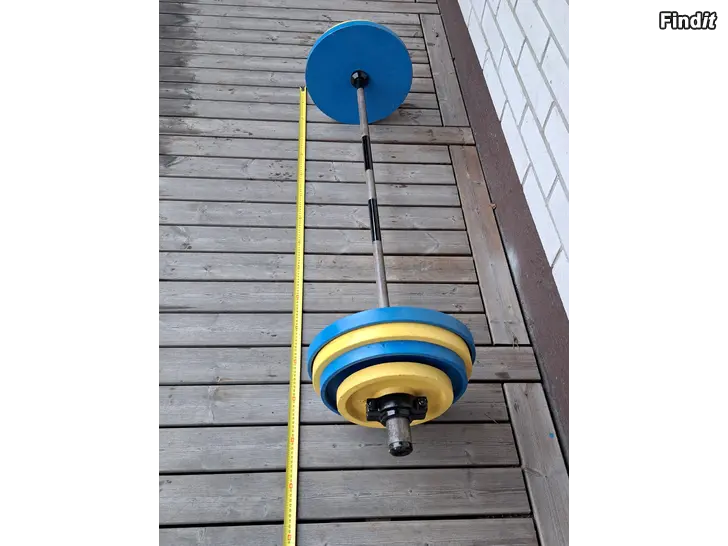 Laakeroitu painonnostotanko + levypainot, yhteensä noin 80 kg. Tangon pituus noin 150 cm, laakeroitujen päiden halkaisija n. 45 mm.