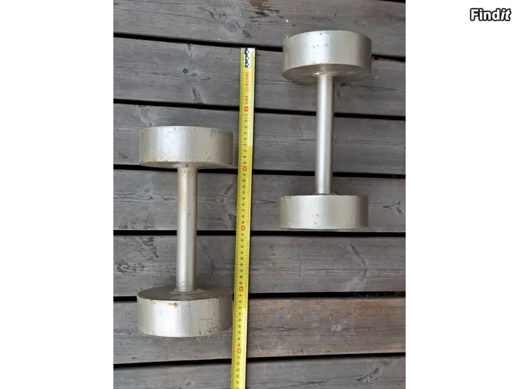 Kiinteät käsipainot, paino noin 2 x 12,5 kg. Levypäiden halkaisija 14 cm ja paksuus 5 cm, painon kokonaispituus 29 cm.